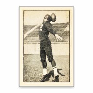 The Etcheverry card is the key piece from the first mainstream Canadian football release. The 100-card set, measuring 2.5″ x 1.75″, also known as “Parkies Football,” features the cards of several other prominent legends of the game, including the famous Argo offensive duo of QB/RB/K Joe Kroll and running back Royal Copeland.