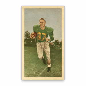 Parker’s rookie card is a prized possession for CFL collectors and a significant piece of Canadian football history. The card features an in-action photo of the legendary Edmonton star, renowned for his remarkable versatility and later serving as a coach. Measuring 4″ x 2.25″, the card headlines the 1954 Blue Ribbon set, one of the CFL’s earliest and most important trading card releases. Highly in demand for its rarity, historical significance, and clean vintage design, the Parker rookie is extremely difficult to find in high grade — making it one of the most valuable and truly iconic CFL cards ever produced.