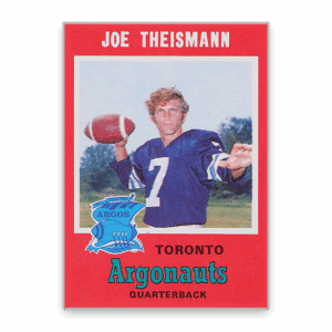 The 1971 OPC card features Theismann during his first year with the Argos and is his first professional issue. The bright-red borders are particularly sensitive to wear, causing values to vary significantly based on condition, with near-mint and mint copies commanding premium prices. Theismann’s on-field success and later broadcasting career enhance the card’s desirability among CFL, NFL, and college football collectors.