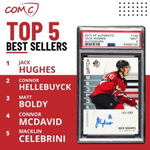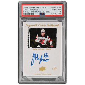 On the other side of the border, Canadian collectors began flooding eBay with Jack Hughes listings — one memorably and tongue-in-cheek titled “I hate you, Jack Hughes!” The card in question was Hughes’ 2019-20 Upper Deck Ice Exquisite Rookie Autograph Black 1-of-1, graded PSA 8.